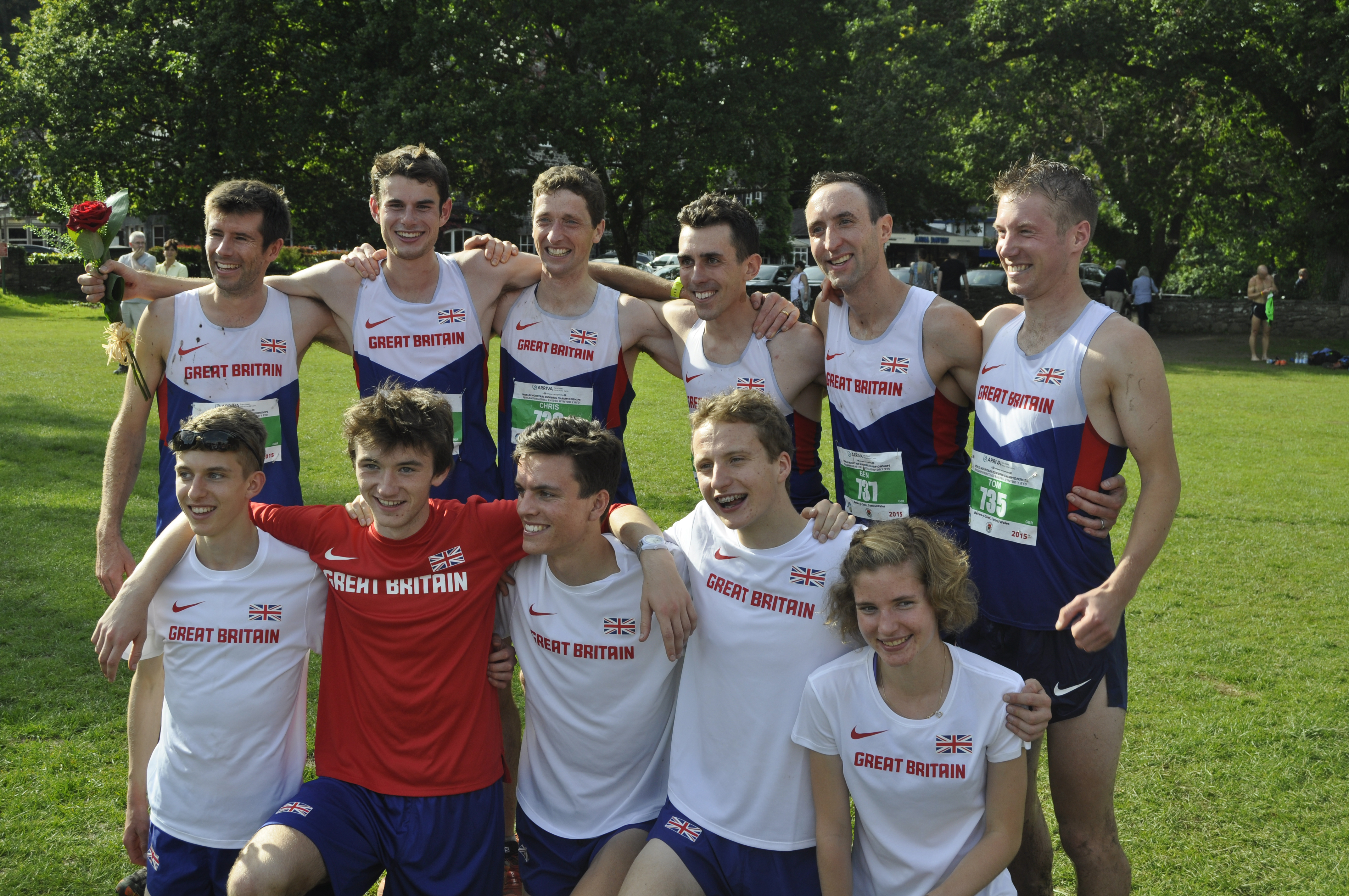 Pictured above: Sprinting to the finish! (top left), a VERY happy GB men’s team (top right) and the GB seniors and juniors (below)