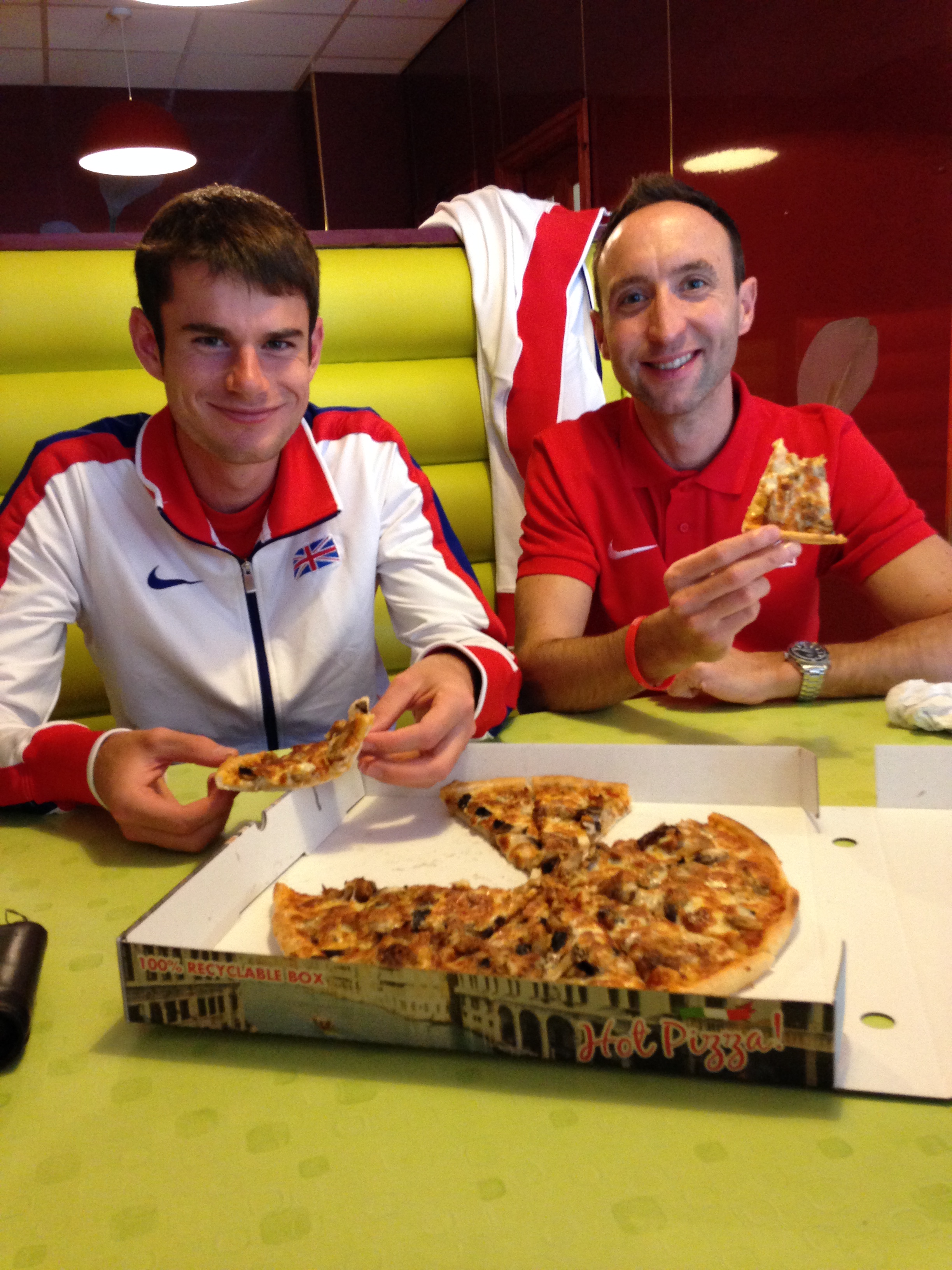 Pictured above: Me actually sharing a pizza with Robbie Simpson and testing my theory on elite mountain runners.