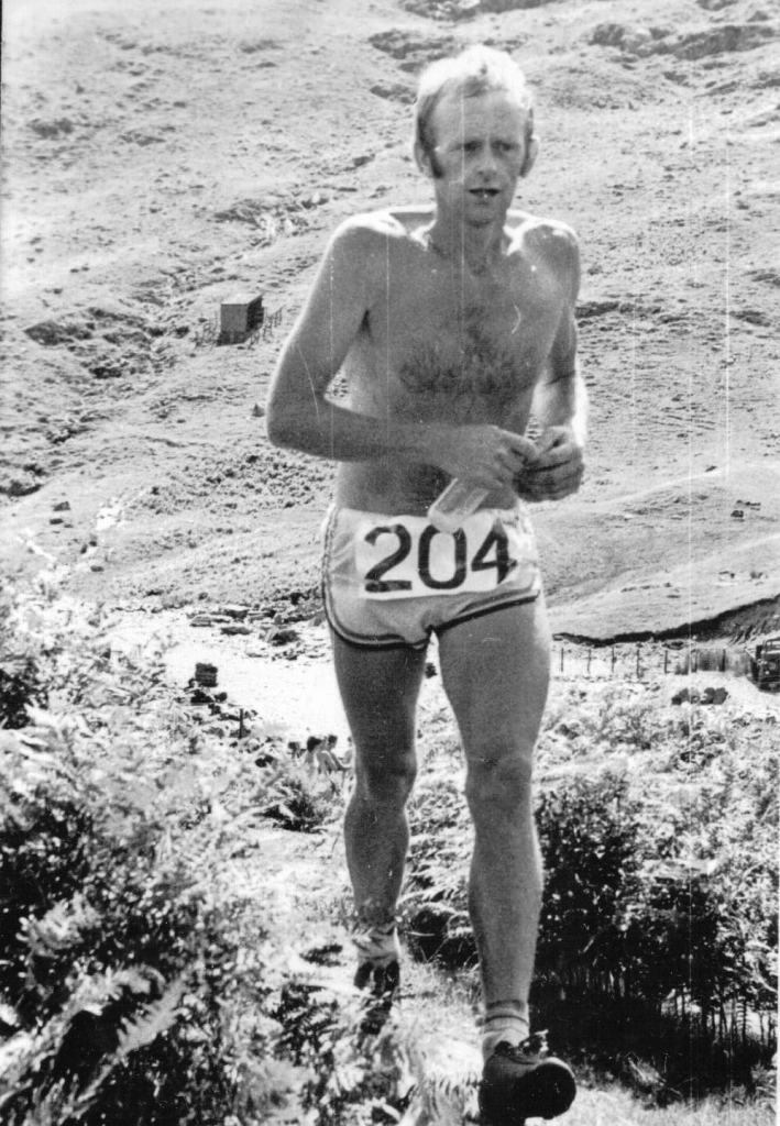 By the first six months of 1980, his championship year, he was up to eighty miles a week in training. But when racing often it would come down to the middle sixties. Mischievously, he says, ‘I’ve made a point of never doing more than 99 miles in a week just to say I’ve never done 100 – but maybe I was telling lies!’ This was all done on the fells when it was light enough, but when the dark nights came in it was mostly on roads in the week and on the fells at weekends.
